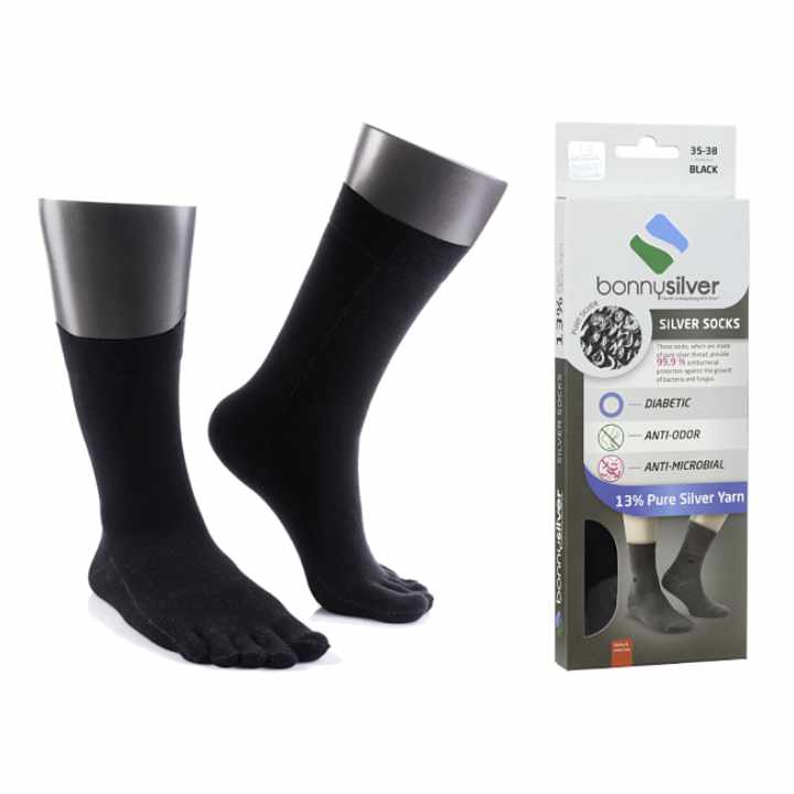 B. Sosete cu degete, pentru diabetici, femei si barbati, cu 13% fir de argint pur, BonnySilver model 116